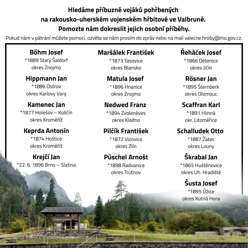 Žatecký rodák padl roku 1916 u Valbruny. Ministerstvo obrany hledá jeho rodinu