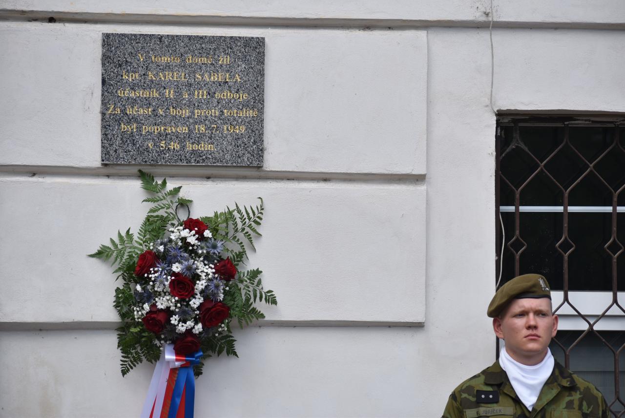 Vzpomínková akce proběhla nejprve na žatecké radnici, kde se k tehdejším událostem vyjádřili starosta Žatce Radim Laibl a pravnučka Karla Sabely Kateřina Sabelová. „Připomínáme si smrt statečného žateckého občana kapitána Karla Sabely, který bojoval nejen proti komunismu, ale také proti nacismu během 2. světové války, za což byl také několikrát vyznamenán,“ zdůraznil starosta Radim Laibl, že voják Karel Sabela se během války vyznamenal v boji za svobodu Československa.