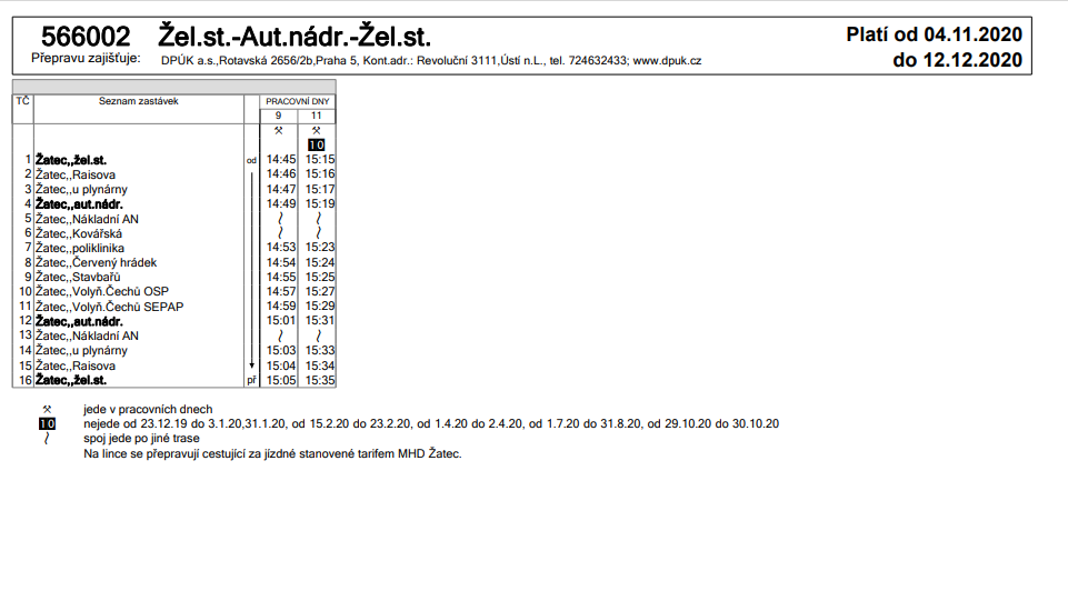 Jízdní řád bude zveřejněn na webových stránkách města Žatec (mesto/jizdni-rady/) a vylepen na zastávkách autobusu.