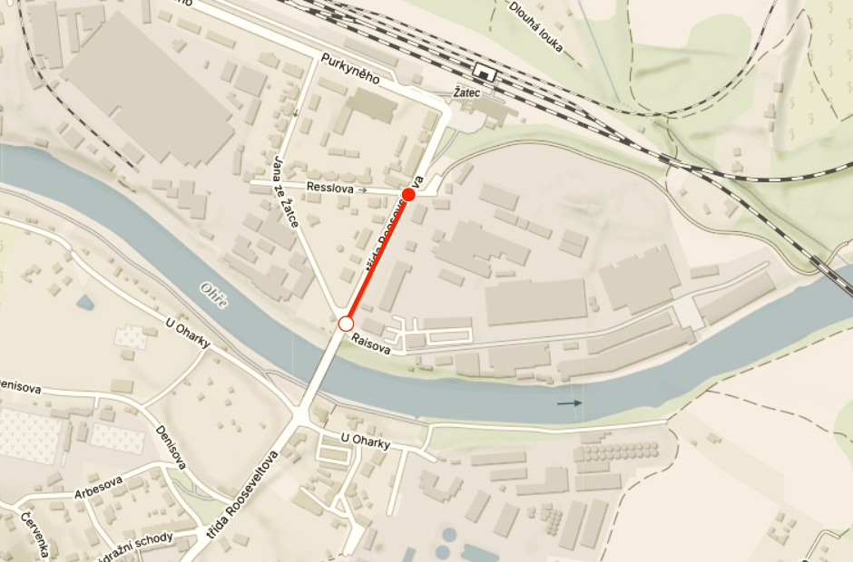 Úplná uzavírka části ulice Jana ze Žatce, a to za křižovatkou s Rooseveltovou třídou. Částečná uzavírka křižovatky ulic Rooseveltovy, Raisovy a Jana ze Žatce, přičemž obousměrný kyvadlový provoz Rooseveltovou ulici zůstane zachován a řídit jej budou semafory.